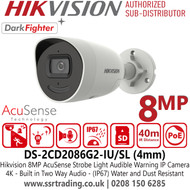 DS-2CD2086G2-IU/SL Hikvision 8MP DarkFighter AcuSense IP Bullet Camera With 4mm Fixed Focal Lens, Built in Two Way Audio, H.265+ Compression