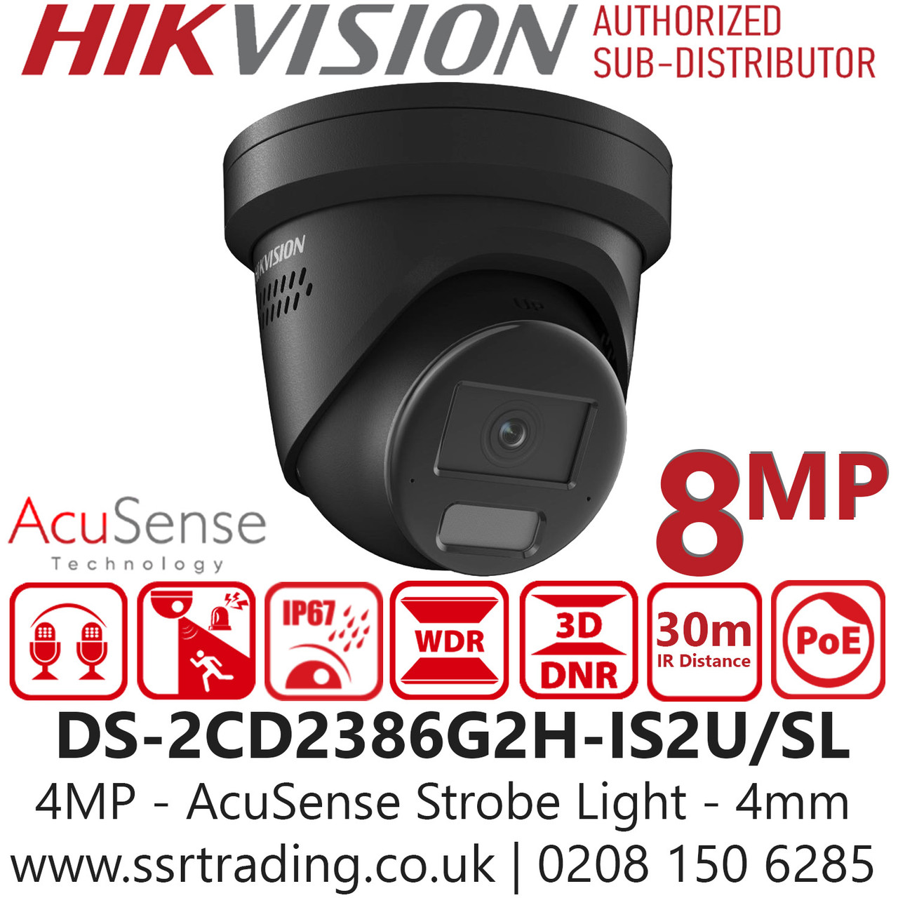 DS-2CD2386G2H-IS2U/SL/Black (4mm) Hikvision 4K/8MP AcuSense Strobe Light and Audible Warning Turret IP PoE Camera