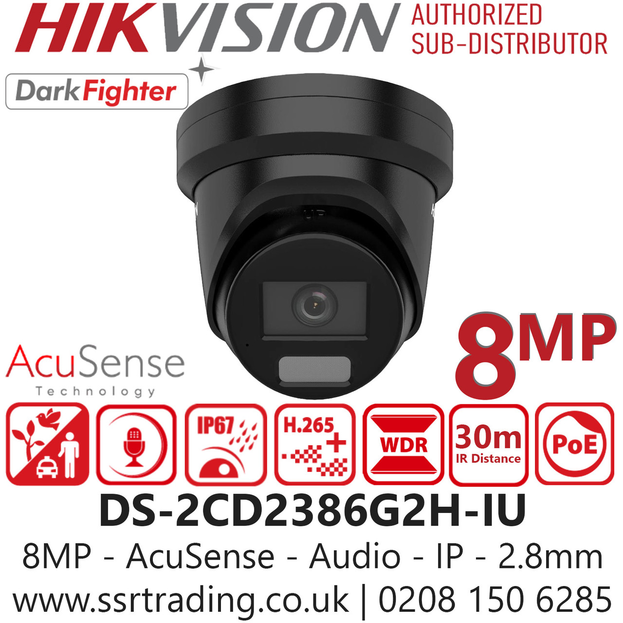 DS-2CD2386G2H-IU/Black (2.8mm) Hikvision 8MP Darkfighter AcuSense Turret PoE 8MP CCTV Camera with Built-in Microphone, 2.8mm Fixed Lens, 30m IR Distance, IP67 Water and Dust Resistant