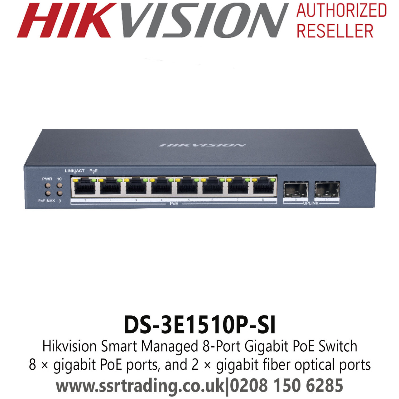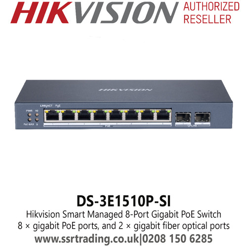 DS-3E1510P-SI Hikvision 8 Port Gigabit PoE Switch, 8 × Gigabit PoE Ports, and 2 × Gigabit Fiber Optical Ports, 6 KV Surge Protection For PoE Ports