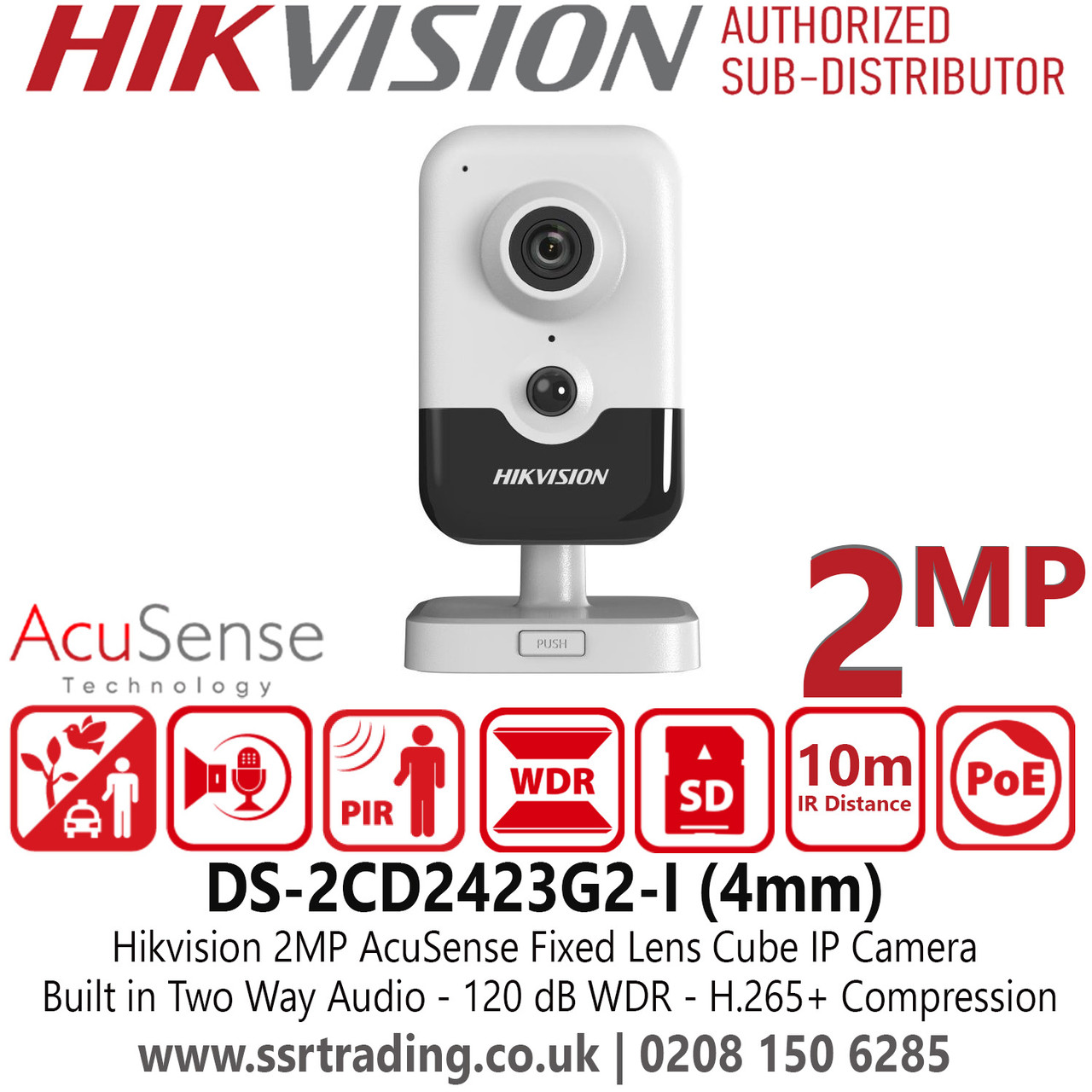 Hikvision 2MP AcuSense Audio Fixed Lens Cube Network IP Camera - DS-2CD2423G2-I (4mm)