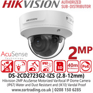 Hikvision 2MP AcuSense Motorized Varifocal IP Dome Camera With (IP67) Water and Dust Resistant and (IK10) Vandal Proof, H.265+ Compression, 120 dB WDR - DS-2CD2723G2-IZS(2.8-12mm)