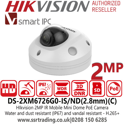 Hikvision 2MP IR Mobile Mini Dome IP PoE Camera with 2.8mm Fixed Lens, 30m IR Range, IP67 Weatherproof - DS-2XM6726G0-IS/ND(2.8mm)(C)