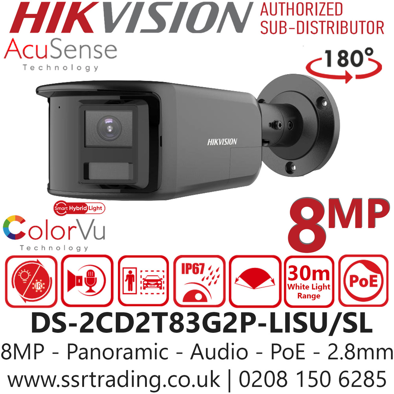 - Hikvision 4K/8MP Panoramic AcuSense Fixed Lens Bullet IP Network Camera Color in Black - DS-2CD2T83G2P-LISU/SL/Black (2.8mm)