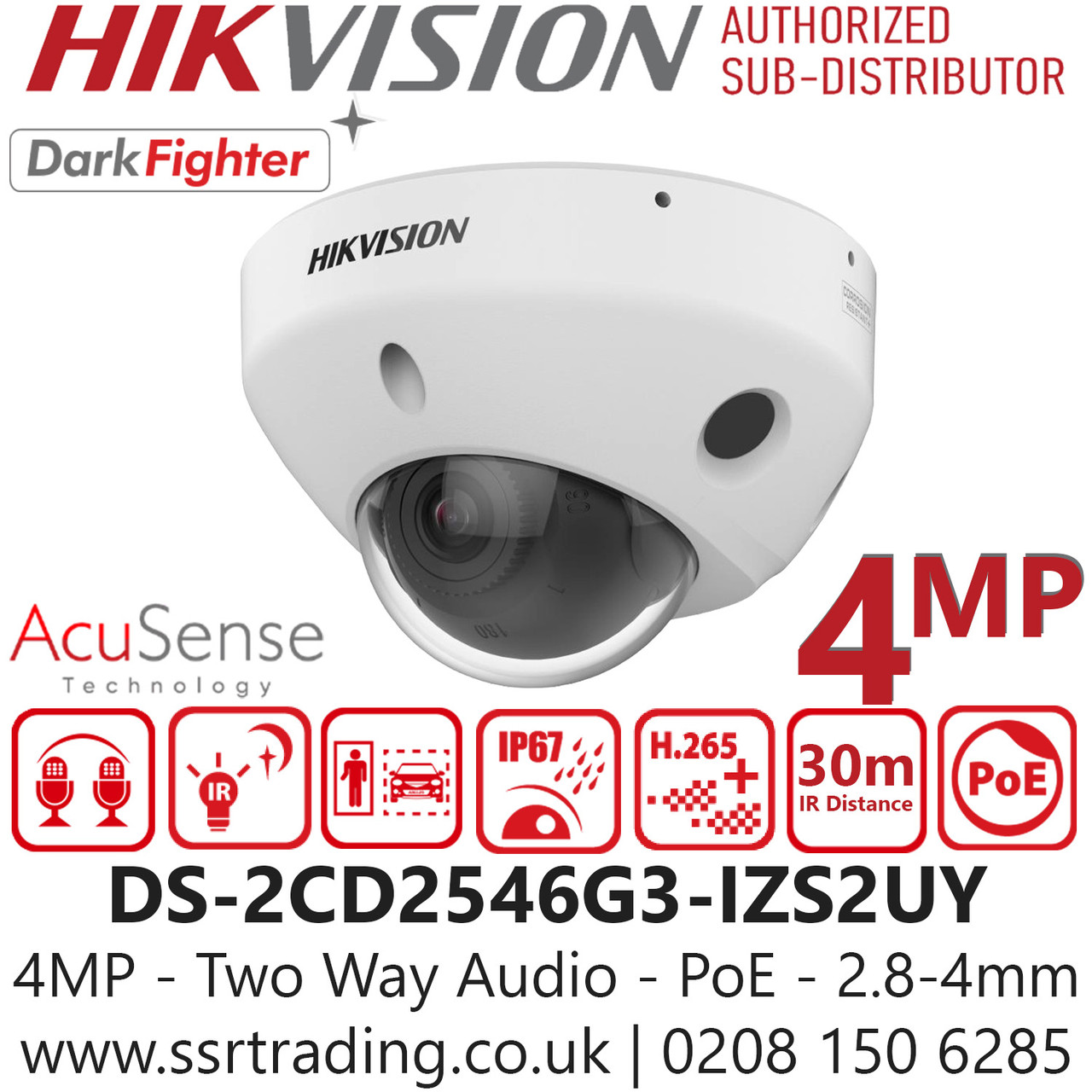 - Hikvision 4MP Acusense Darkfighter Vari-focal Mini Dome IP Camera - DS-2CD2546G3-IZS2UY (2.8-4mm)