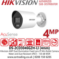 Hikvision 4MP AcuSense Dual Illumination IP Bullet Camera With 4mm Fixed Lens, Smart Dual Light, 130 dB WDR, H.265+ Compression - DS-2CD3046G2H-LI(4mm)