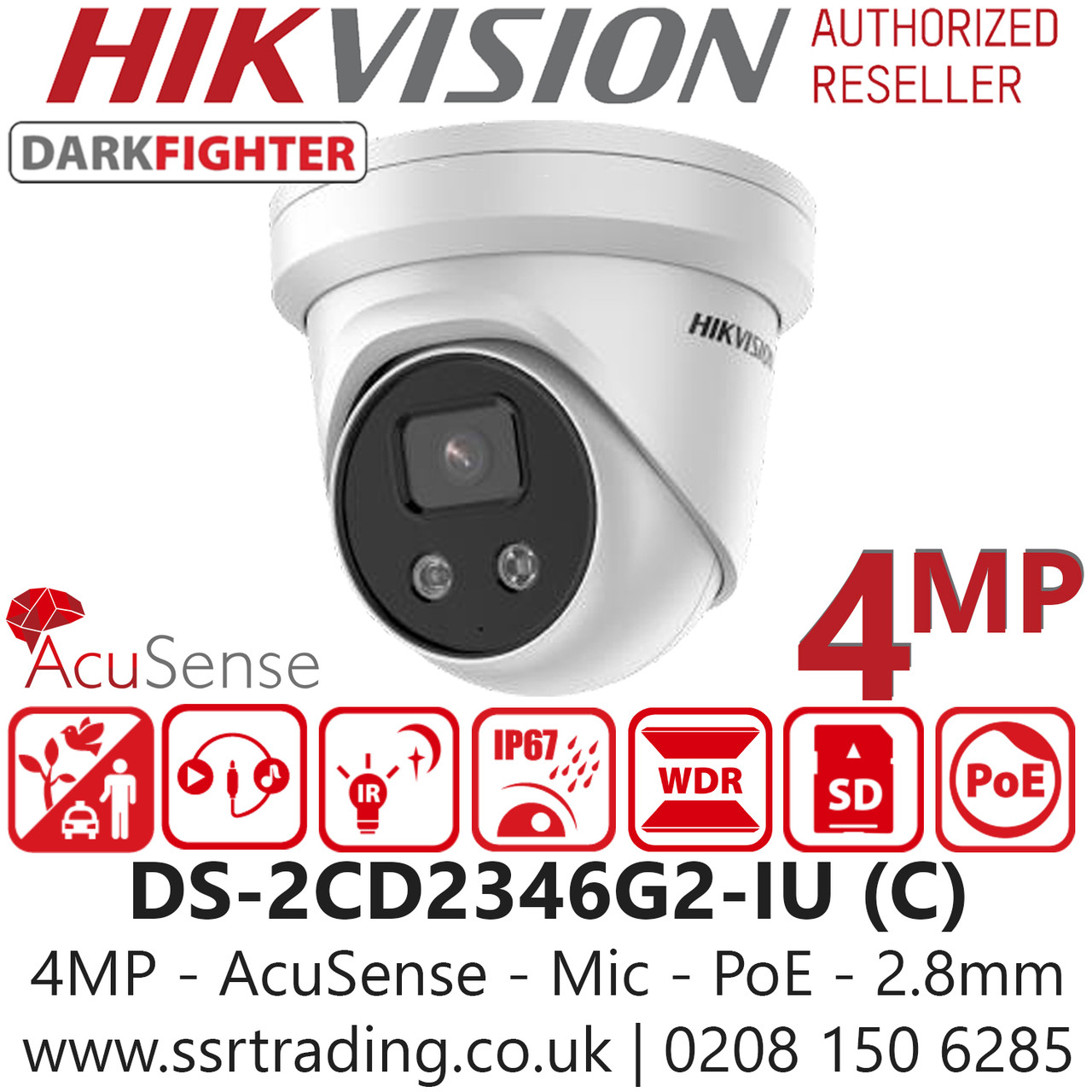 Hikvision 4MP PoE IP AcuSense Darkfighter Audio Turret Camera - DS-2CD2346G2-IU(2.8mm)