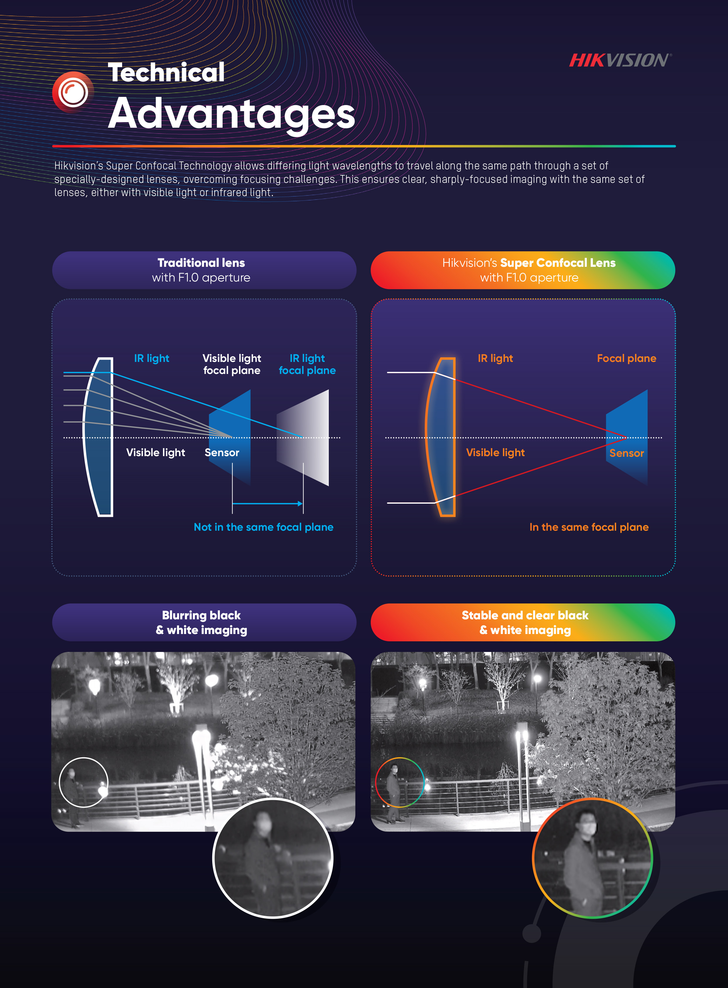 Clear imaging against strong back light due to 130 dB WDR technology -