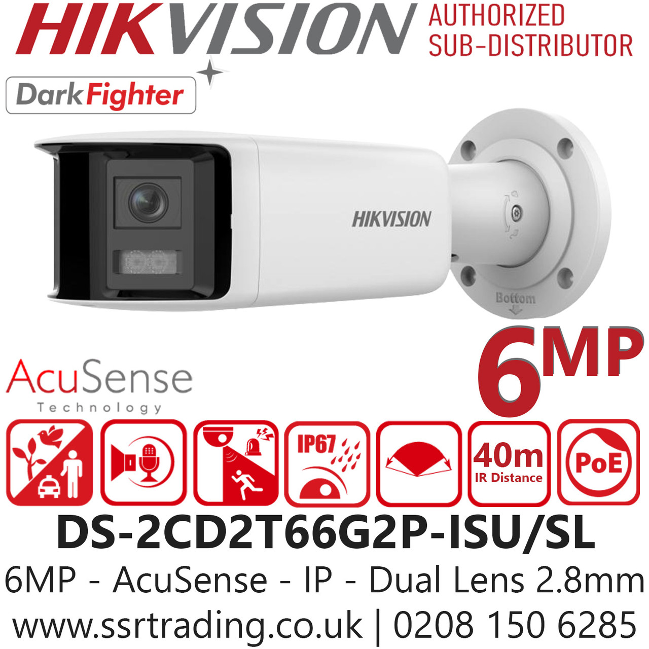Hikvision 6MP ColorVu IP PoE Bullet Camera with Audio Alarm & Strobe, Dual Lens 2.8mm, Two Way Talk, AcuSense and DarkFighter Technology - DS-2CD2T66G2P-ISU/SL