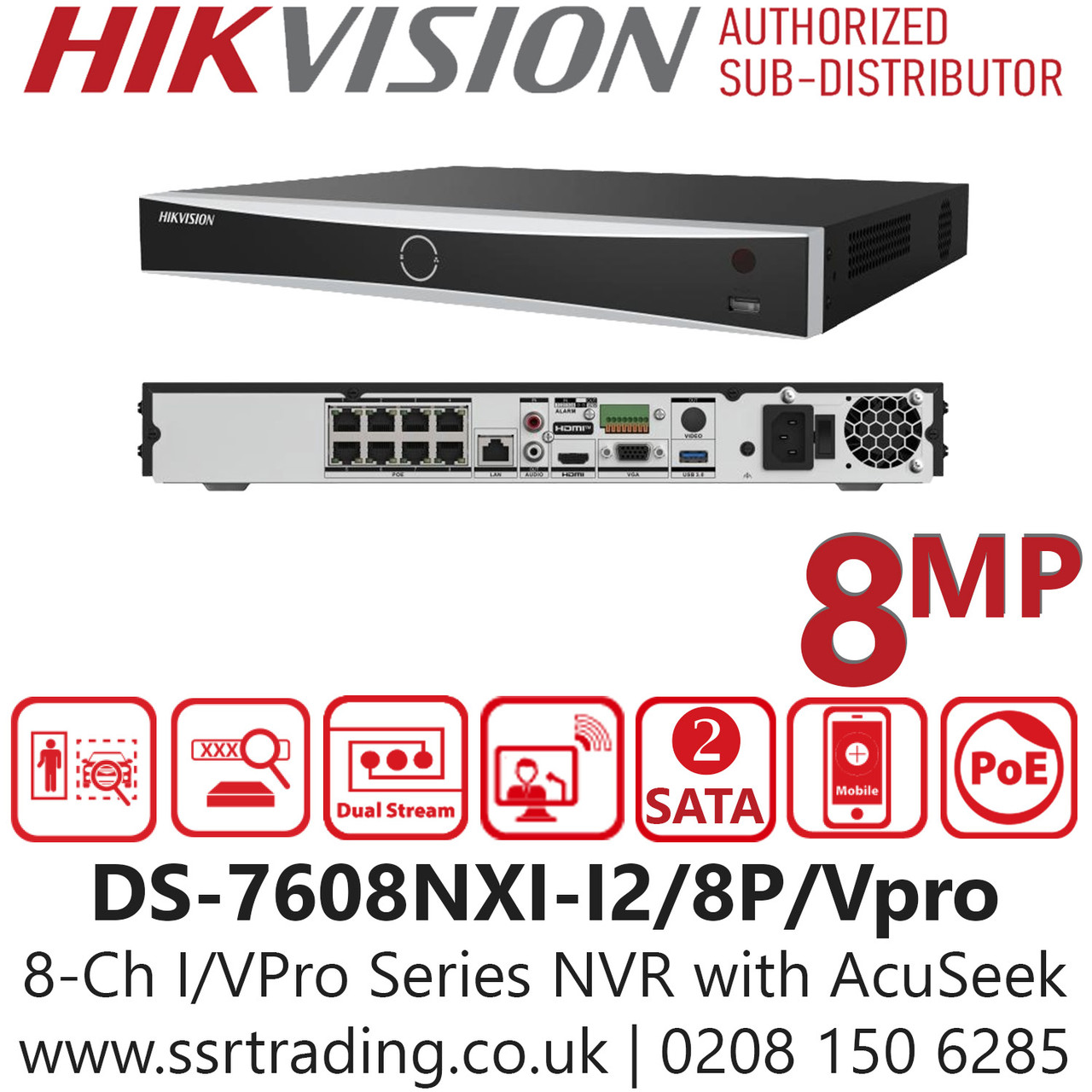 Hikvision 8Ch I/VPro Series NVR with AcuSeek - DS-7608NXI-I2/8P/Vpro