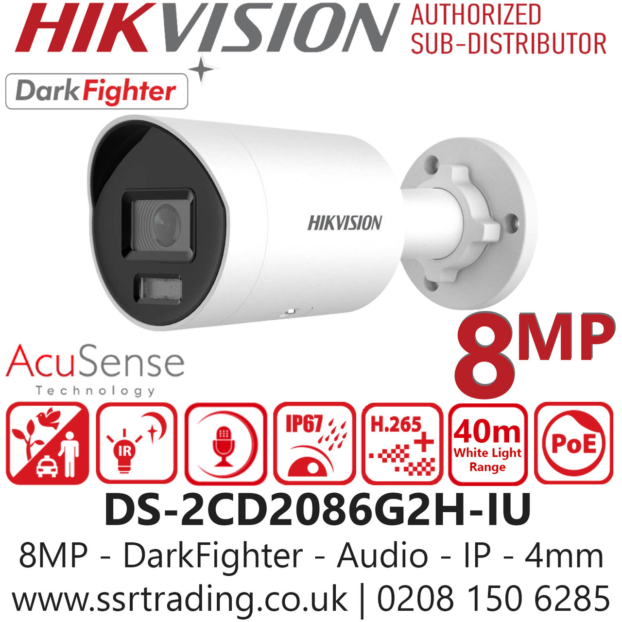 - Hikvision 8MP Darkfighter Mini Bullet PoE Camera - DS-2CD2086G2H-IU (4mm)