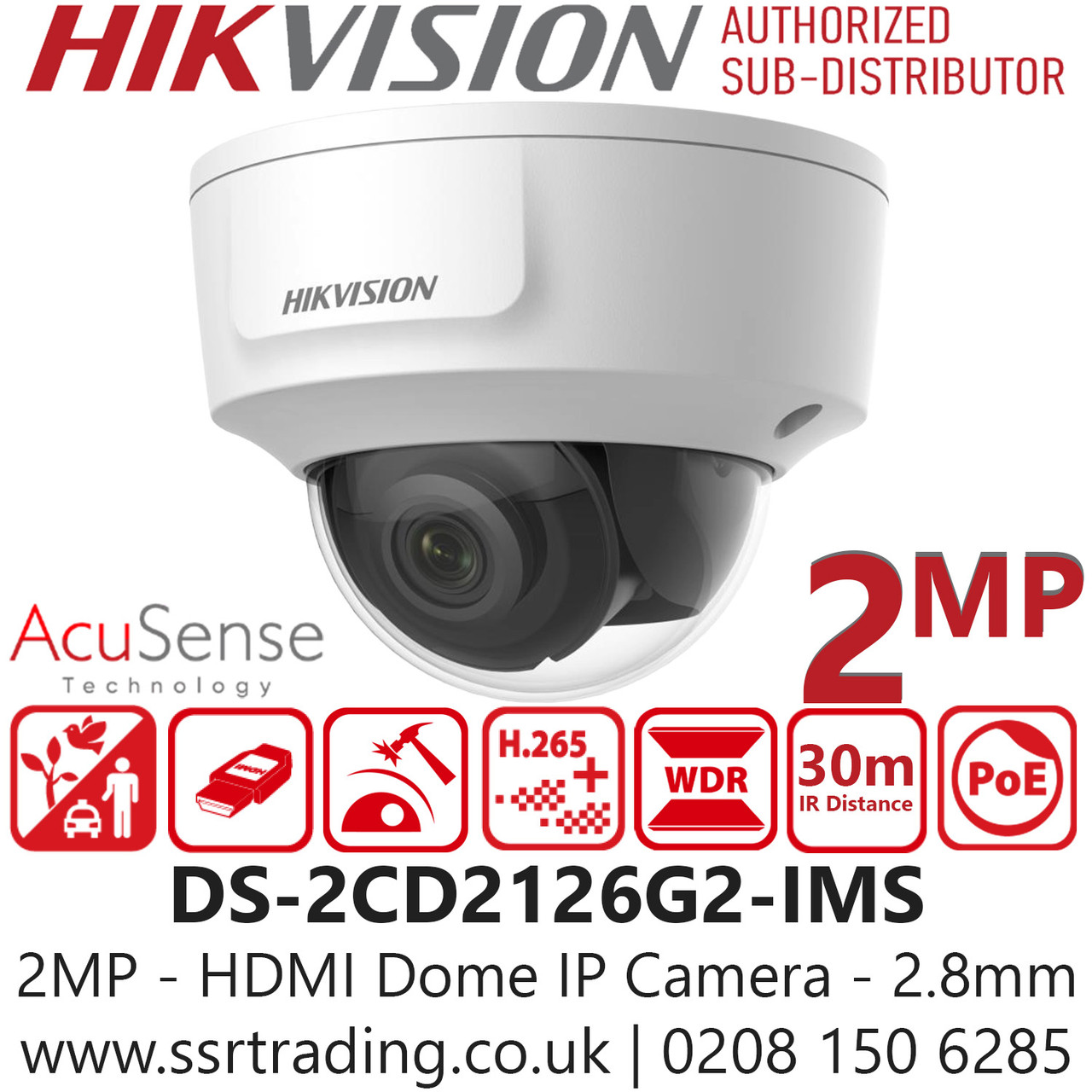 Hikvision DS-2CD2126G2-IMS 2MP (1920 x 1080) Dome IP PoE Camera with AcuSense Technology, Efficient H.265+ Compression, A Fixed 2.8mm Lens, and an IR Range of up to 30 Meters