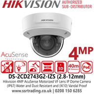 Hikvision DS-2CD2743G2-IZS 4MP AcuSense IP Dome Camera With 2.8-12mm Motorized VF Lens, H.265+ Compression, 120 dB WDR, 40m IR Distance