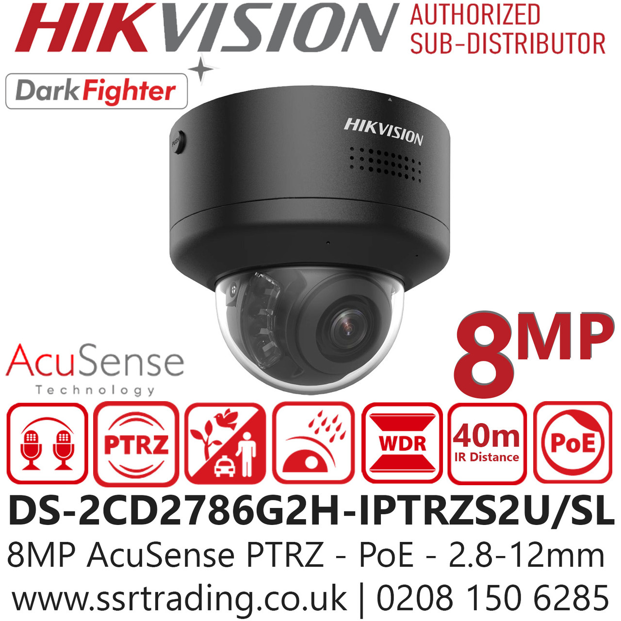Hikvision DS-2CD2786G2H-IPTRZS2U/SL/Black (2.8-12mm) 8MP/4K AcuSense PTRZ Varifocal Dome IP PoE Camera
