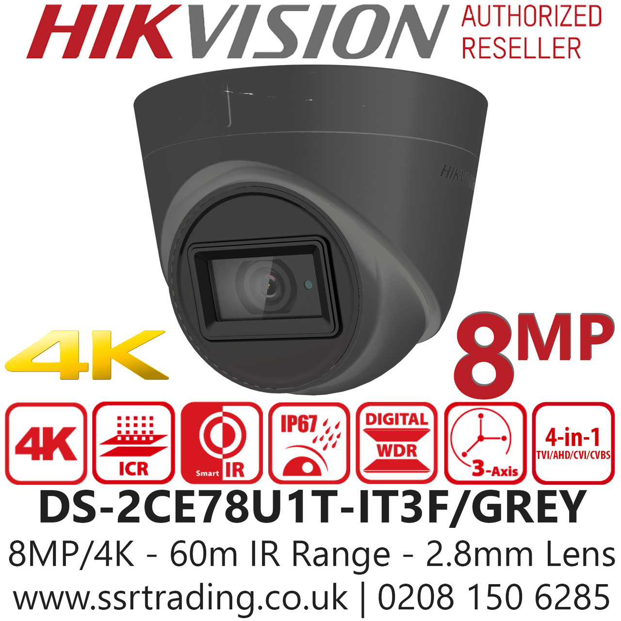 Hikvision DS-2CE78U1T-IT3F/Grey 8MP/4K TVI Turret Camera - 2.8mm Fixed Lens - 4-in-1 - 60m IR Distance - EXIR Technology - IP67