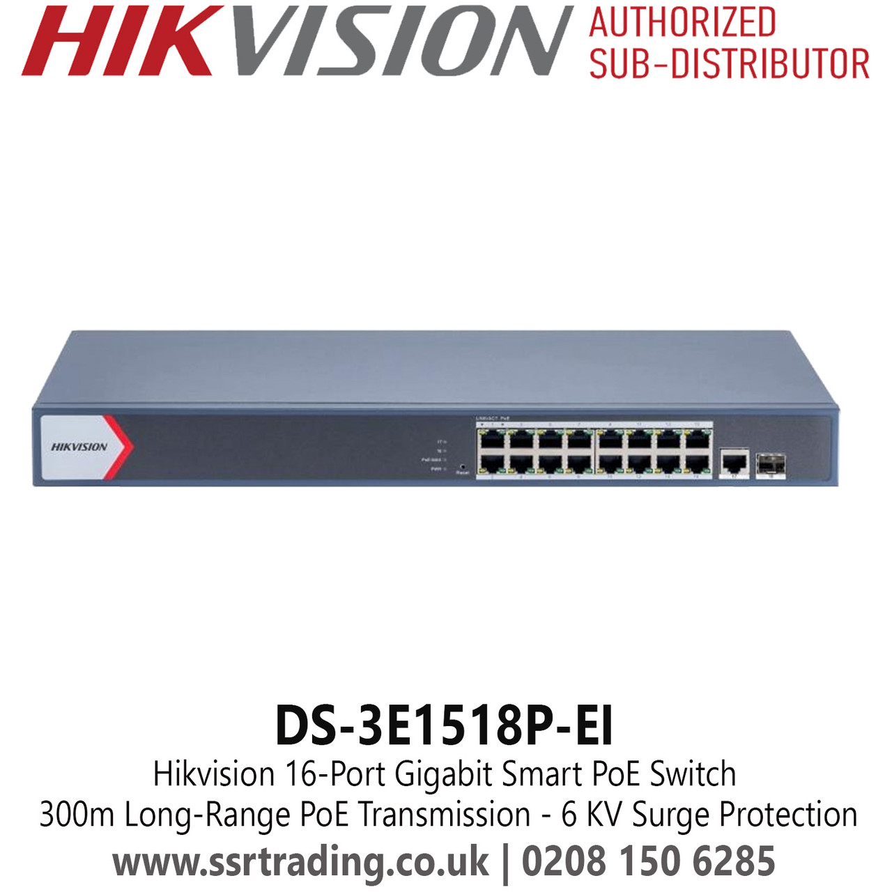 - Hikvision DS-3E1518P-EI 16 Port Gigabit Smart PoE Switch