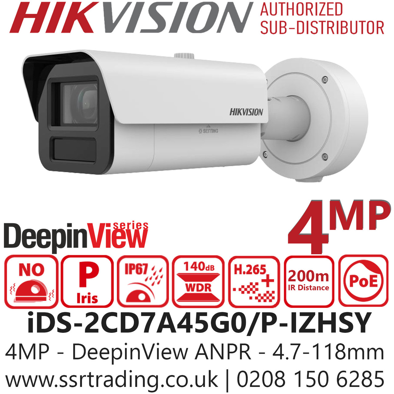 Hikvision iDS‑2CD7A45G0/P‑IZHSY CCTV Advanced License Plate Recognition UK - 4MP IP PoE Network Bullet Camera