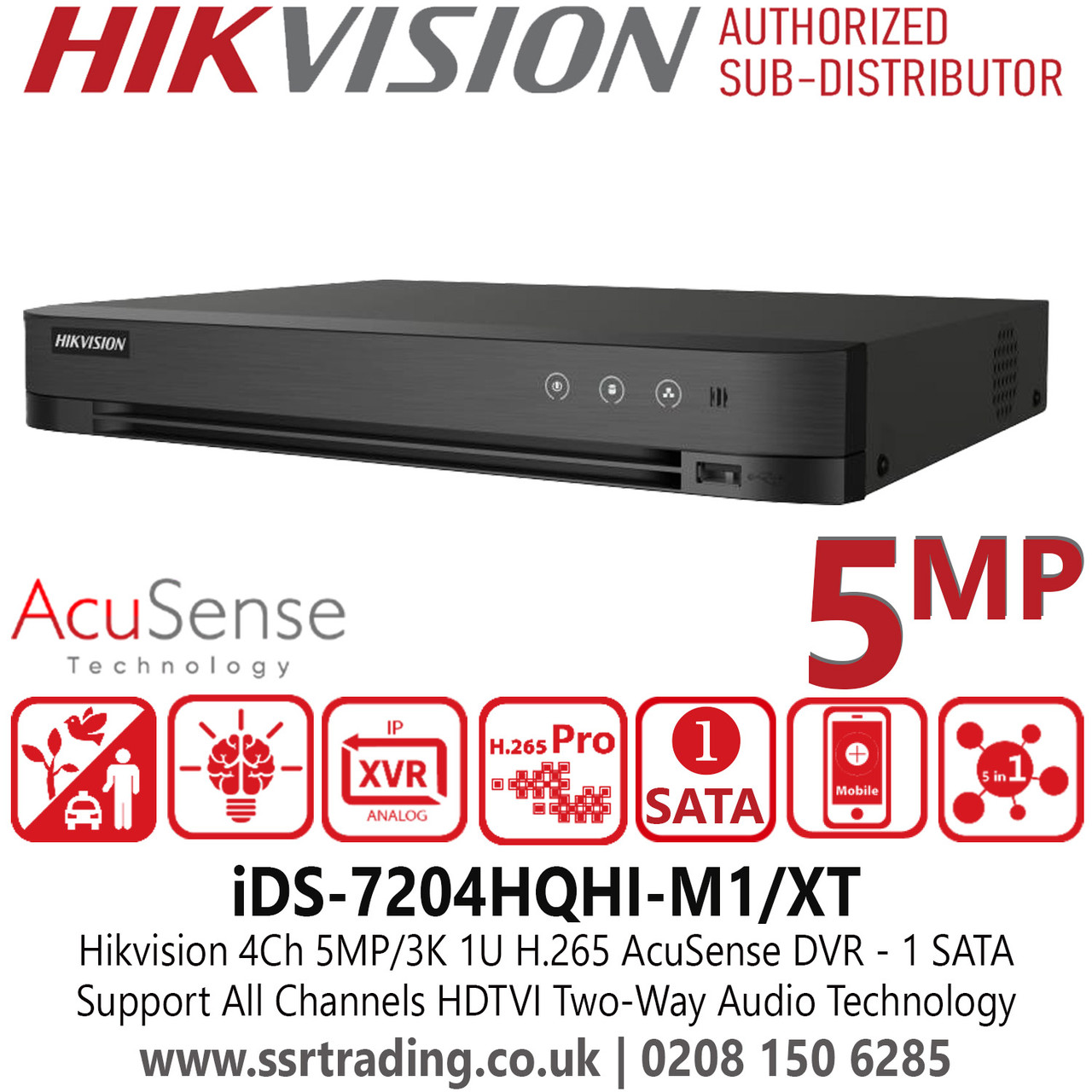 Hikvision iDS-7204HQHI-M1/XT 4Ch 5MP/3K 1U H.265 AcuSense 4ch DVR - Support All channels HDTVI Two-Way Audio Technology - 5 Signals Input Adaptively (HDTVI/AHD/CVI/CVBS/IP)
