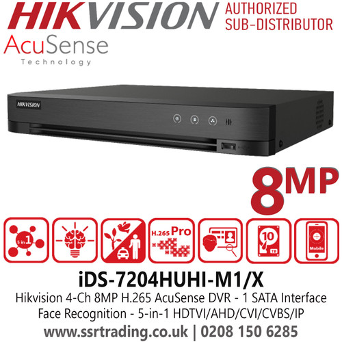 Hikvision iDS-7204HUHI-M1/X 4 Channel 8MP AcuSense DVR, 5 Signals Input Adaptively (HDTVI/AHD/CVI/CVBS/IP), H.265 Pro+ Compression, 8 Network Cameras Can be Connected