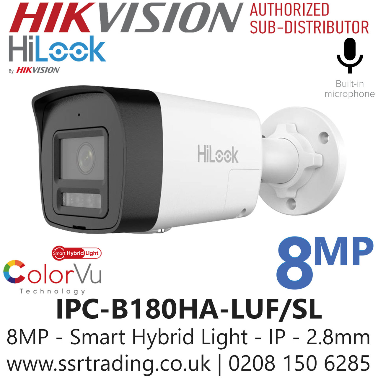 HiLook 8MP/4K Bullet IP PoE Camera – H.265+, IR 30m, IP67, Smart Detection, PoE, ONVIF Compatible, Wide Angle Lens, Night Vision, Outdoor CCTV Security Solution for Homes & Businesses - IPC-B180HA-LUF/SL (2.8mm)