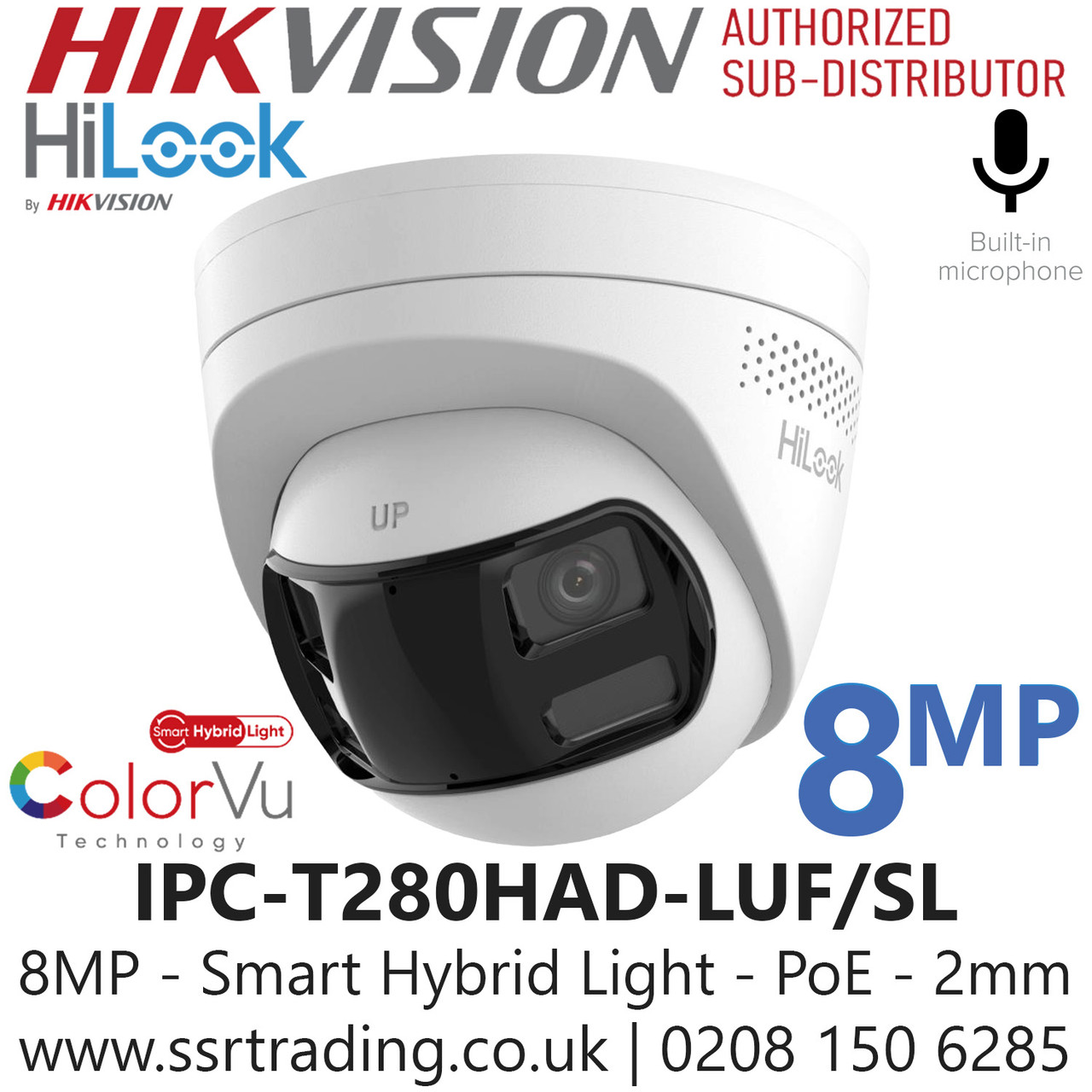 - HiLook 8MP Dual Lens Smart Hybrid Light Turret IP Camera - IPC-T280HAD-LUF/SL (2mm)