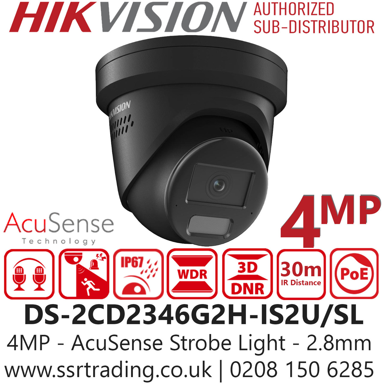 The Hikvision DS-2CD2346G2H-IS2U/SL/Black is a professional 4MP IP turret camera designed for reliable surveillance with advanced AcuSense technology. Featuring intelligent human and vehicle detection, built-in microphone, and active strobe light with audio alarm, it enhances security for commercial and residential applications. With H.265+ compression, the camera ensures efficient bandwidth and storage usage. Its weatherproof design (IP67) and infrared night vision deliver clear images in challenging environments. GDPR-compliant and NDAA-ready, this model meets UK standards for data protection and security. Ideal for businesses seeking robust monitoring solutions with smart analytics and long-term performance.