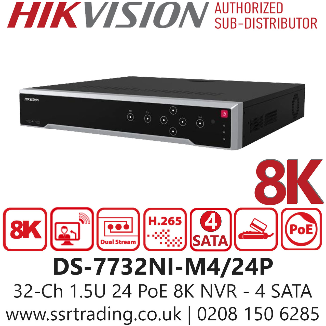 DS-7732NI-M4/24P Hikvision 32 Channel 24 PoE 8K NVR with 4 SATA Interfaces