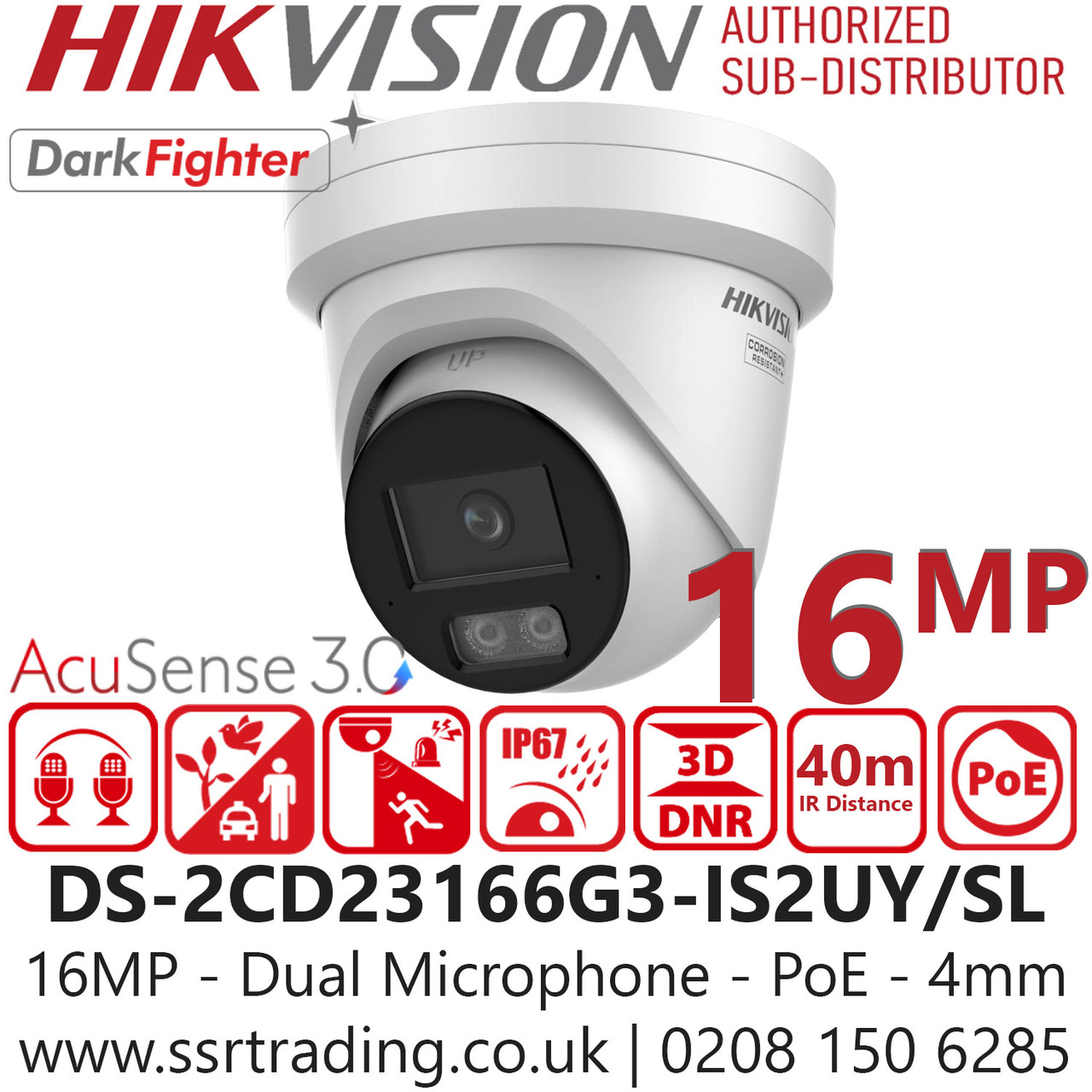 Hikvision 16MP IP Turret CCTV Camera, EXIR 2.0 Infrared, WDR, H.265+, NDAA Compliant, IP67 Outdoor Security - DS-2CD23166G3-IS2UY/SL (4mm)