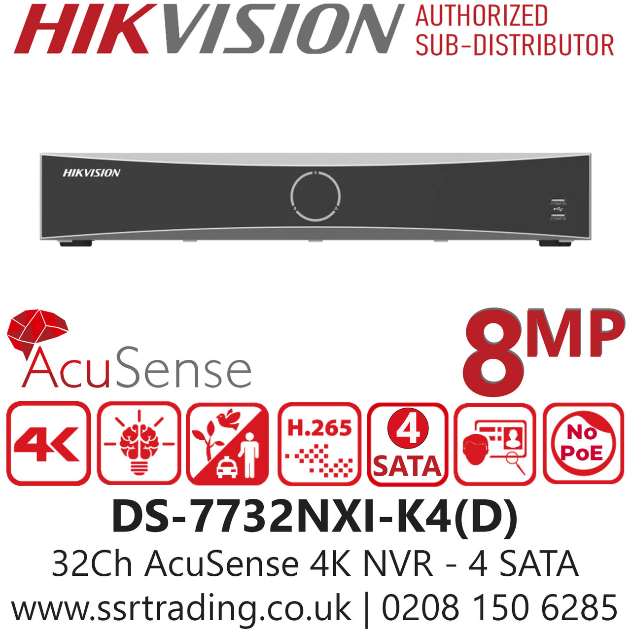 Hikvision 32Ch K Series AcuSense 4K NVR - 4 SATA - DS-7732NXI-K4(D)