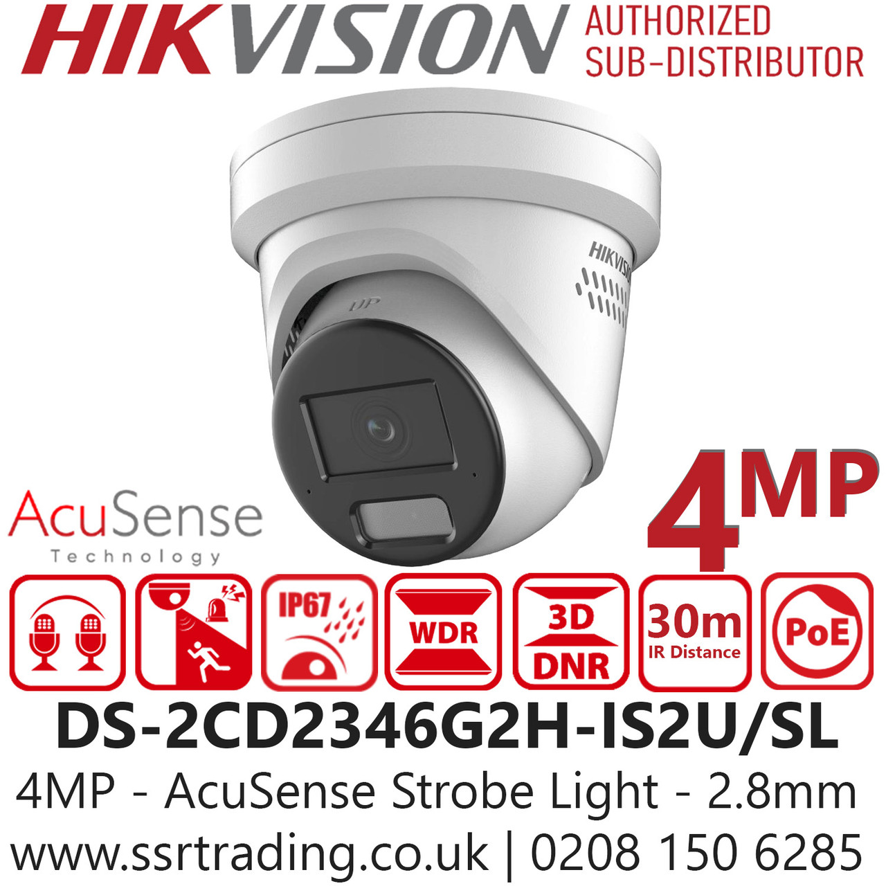 The Hikvision DS-2CD2346G2H-IS2U/SL is a professional 4MP IP turret camera designed for reliable surveillance with advanced AcuSense technology. Featuring intelligent human and vehicle detection, built-in microphone, and active strobe light with audio alarm, it enhances security for commercial and residential applications. With H.265+ compression, the camera ensures efficient bandwidth and storage usage. Its weatherproof design (IP67) and infrared night vision deliver clear images in challenging environments. GDPR-compliant and NDAA-ready, this model meets UK standards for data protection and security. Ideal for businesses seeking robust monitoring solutions with smart analytics and long-term performance.