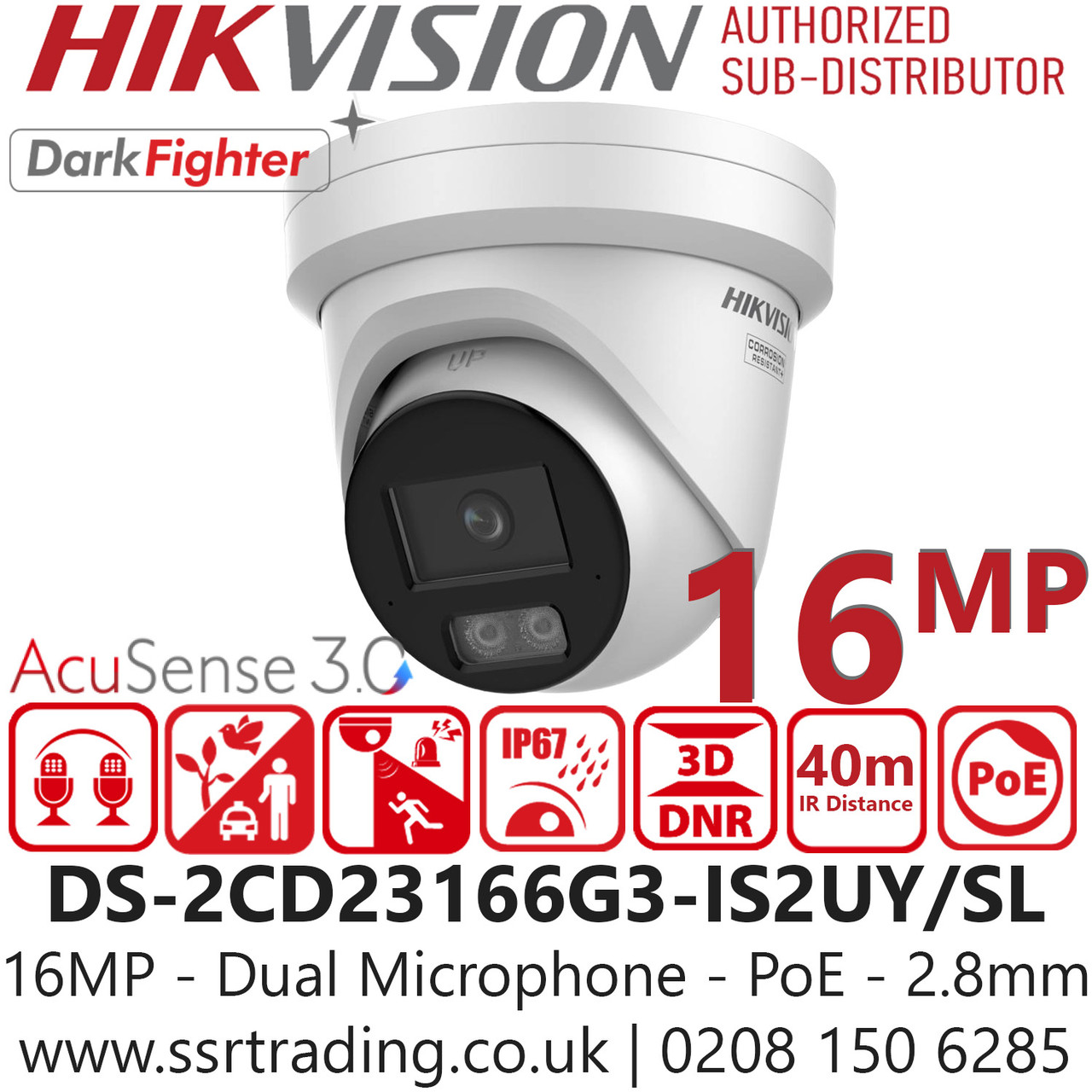 Hikvision DS-2CD23166G3-IS2UY/SL (2.8mm)16MP Acusense Strobe Light and Audible Warning & Smart Hybrid Light Fixed Lens Turret IP Network Camera