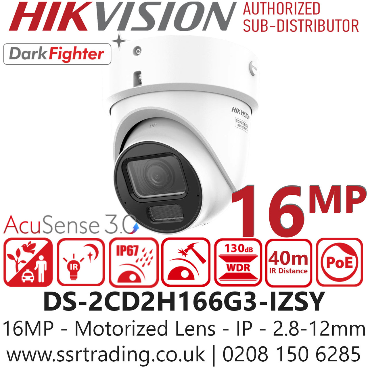 Hikvision DS-2CD2H166G3-IZSY Advanced 16MP Surveillance IP PoE Turret Camera, DarkFighter Technology, Smart Intrusion Detection, GDPR/NDAA Compliant, IP67 Outdoor CCTV for UK Commercial Security