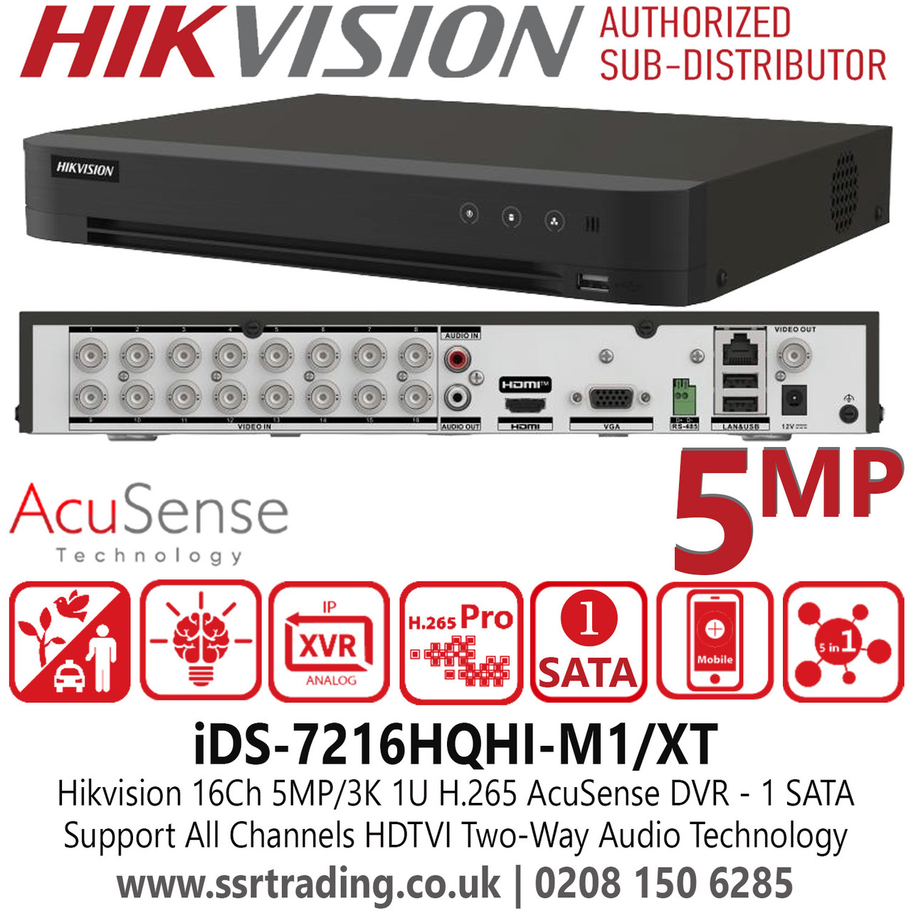 Hikvision DS-7216HQHI-M1/XT 16Ch 5MP/3K 1U H.265 AcuSense HDTVI/AHD/CVI/CVBS/IP 16Ch DVR - Support All Channels HDTVI Two-Way Audio Technology - Support All Channels Motion Detection Technology