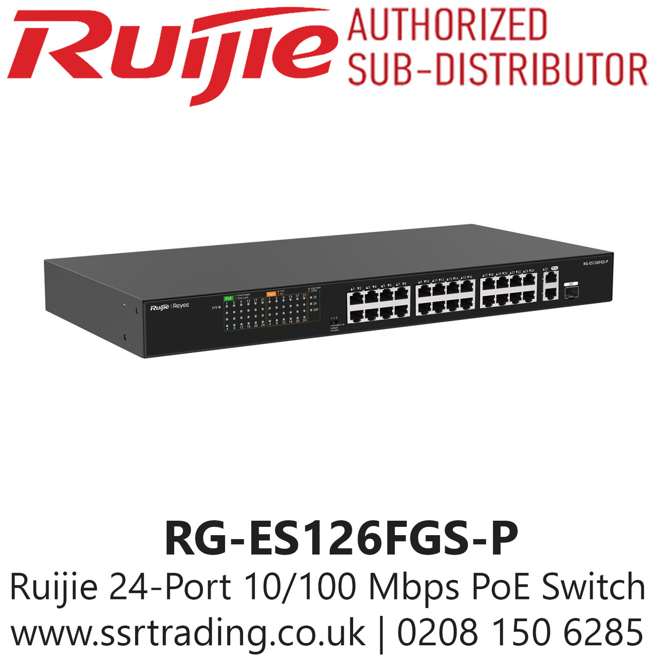 - Ruijie 24 Port 10/100 Mbps with 2-Port Gigabit Unmanaged PoE Switch - RG-ES126FGS-P