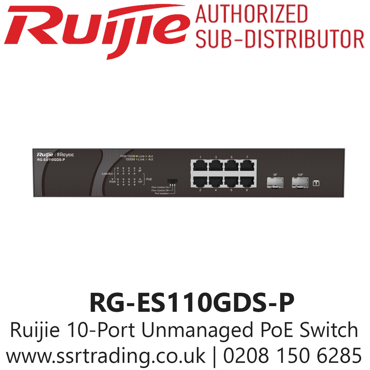 The RG‑ES110GDS‑P is a high‑performance Gigabit desktop switch designed for small offices, home networks, and surveillance setups requiring reliable connectivity. Featuring multiple auto‑negotiation ports, it delivers seamless data transfer, stable performance, and energy‑efficient operation with a fanless, silent design. Its compact, durable housing ensures easy installation and long‑term use, while IEEE 802.3 compliance guarantees compatibility with modern networking standards. Ideal for IP cameras, routers, and multi‑device expansion, the RG‑ES110GDS‑P supports secure transmission and optimized bandwidth for smooth internet sharing. A cost‑effective, plug‑and‑play solution, it meets CE, RoHS, and NDAA compliance for UK.